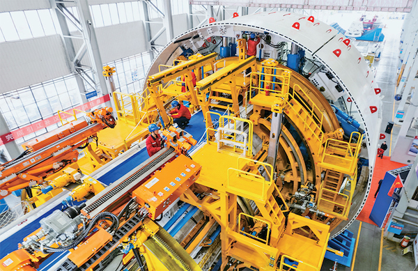 2024年11月22日,由鐵建重工、水電六局聯(lián)合打造的“江漢新石器號(hào)”隧道掘進(jìn)機(jī)在長(zhǎng)沙下線,這是迄今中國(guó)最大直徑敞開(kāi)式巖石隧道掘進(jìn)機(jī)。圖為當(dāng)日,在鐵建重工長(zhǎng)沙第一產(chǎn)業(yè)園,工人在調(diào)試“江漢新石器號(hào)”隧道掘進(jìn)機(jī)。 新華社記者 陳思汗/攝?