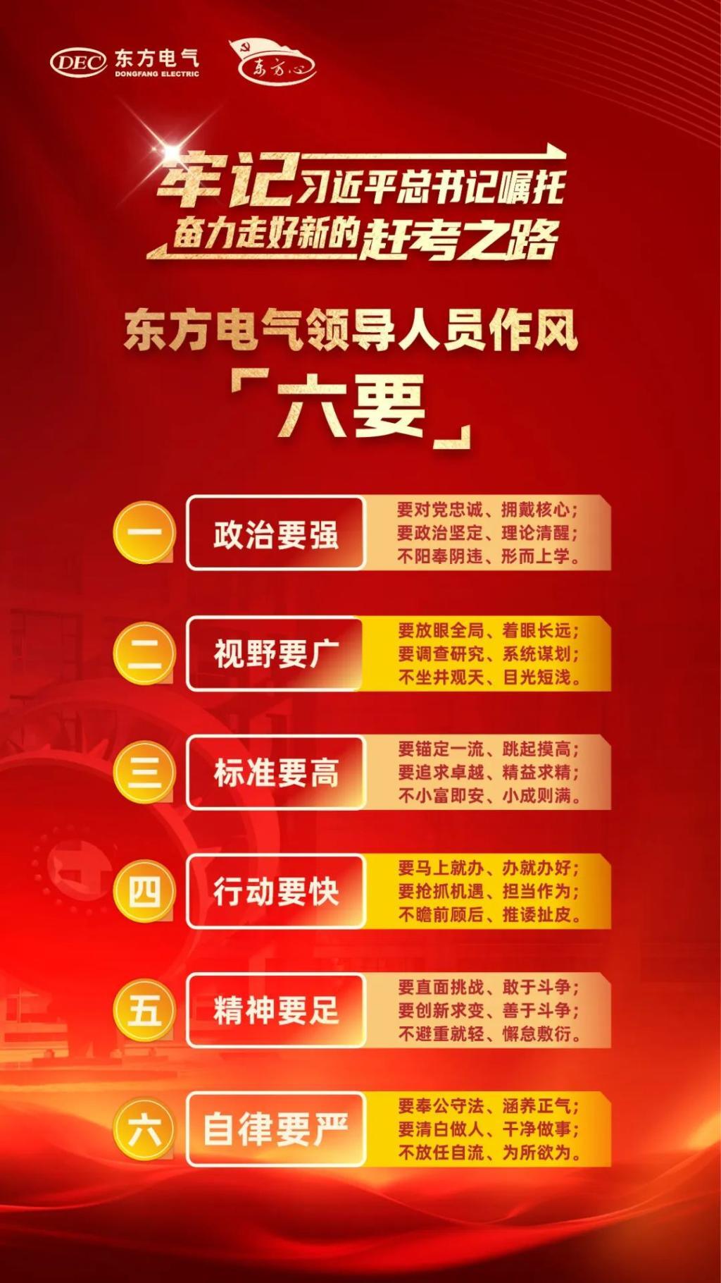 各級黨組織和全體黨員干部職工務(wù)必要以“東方心”黨建品牌為引領(lǐng),以黨建“三年攀高計劃”“登高而招”為牽引,向更深處領(lǐng)悟,向更實處踐行,向更高處攀登,向更嚴(yán)處發(fā)力,接續(xù)奮斗、勇毅前行,形成全集團共擔(dān)使命、共譜新篇、攜手奮進(jìn)、萬馬奔騰的生動局面,以東方電氣的“穩(wěn)”“進(jìn)”“立”為全國大局作出新的貢獻(xiàn)。
