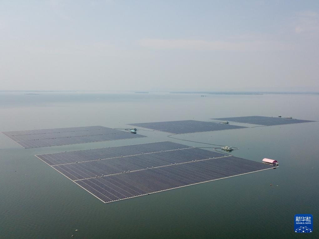 這是3月5日拍攝的泰國(guó)孔敬府烏汶叻水面漂浮光伏電站(無(wú)人機(jī)照片)。新華社記者 林昊 攝