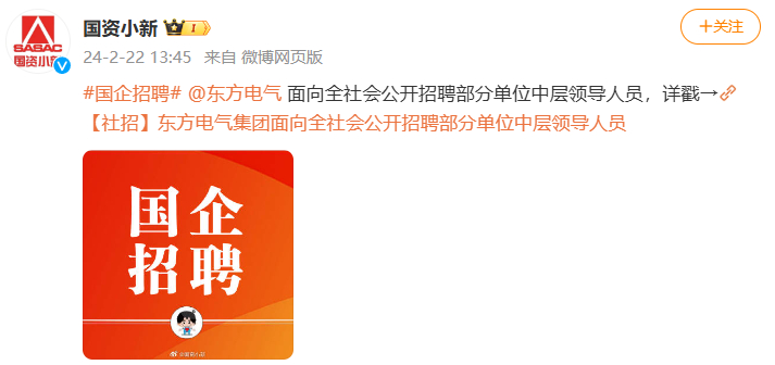 #國(guó)企招聘#@東方電氣面向全社會(huì)公開招聘部分單位中層領(lǐng)導(dǎo)人員,詳戳→