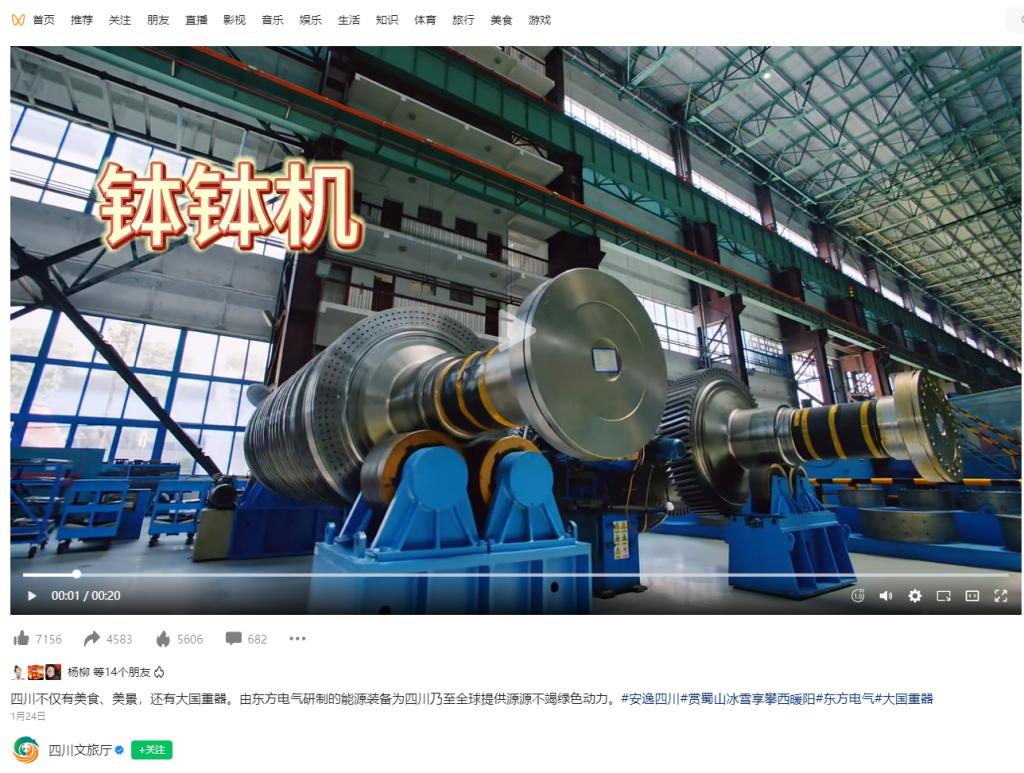 [四川文旅廳]四川不僅有美食、美景,還有大國重器。由東方電氣研制的能源裝備為四川乃至全球提供源源不竭綠色動力。