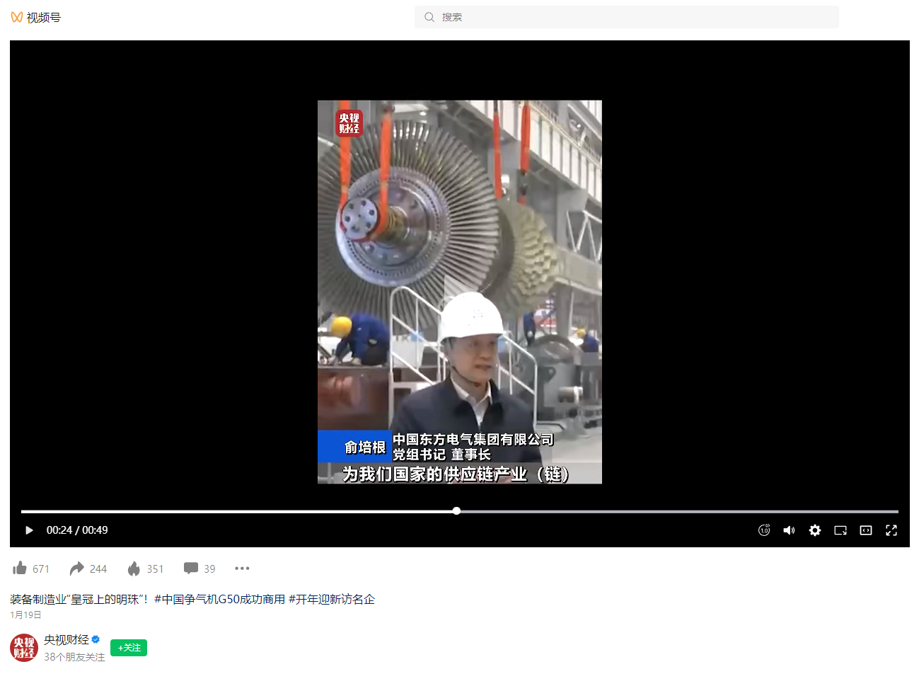 [央視財(cái)經(jīng)]裝備制造業(yè)“皇冠上的明珠”!#中國(guó)爭(zhēng)氣機(jī)G50成功商用 #開(kāi)年迎新訪名企
