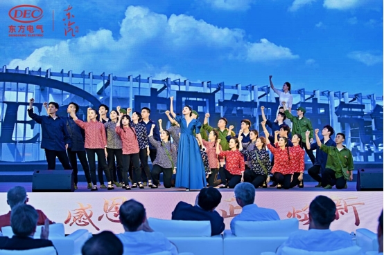 情景展演《脊梁之上》藝術(shù)地再現(xiàn)了東方電氣從艱苦卓絕的三線創(chuàng)業(yè),到經(jīng)歷磨難后的涅槃重生,再到新時代勇攀高峰、服務國家戰(zhàn)略的壯麗畫卷。