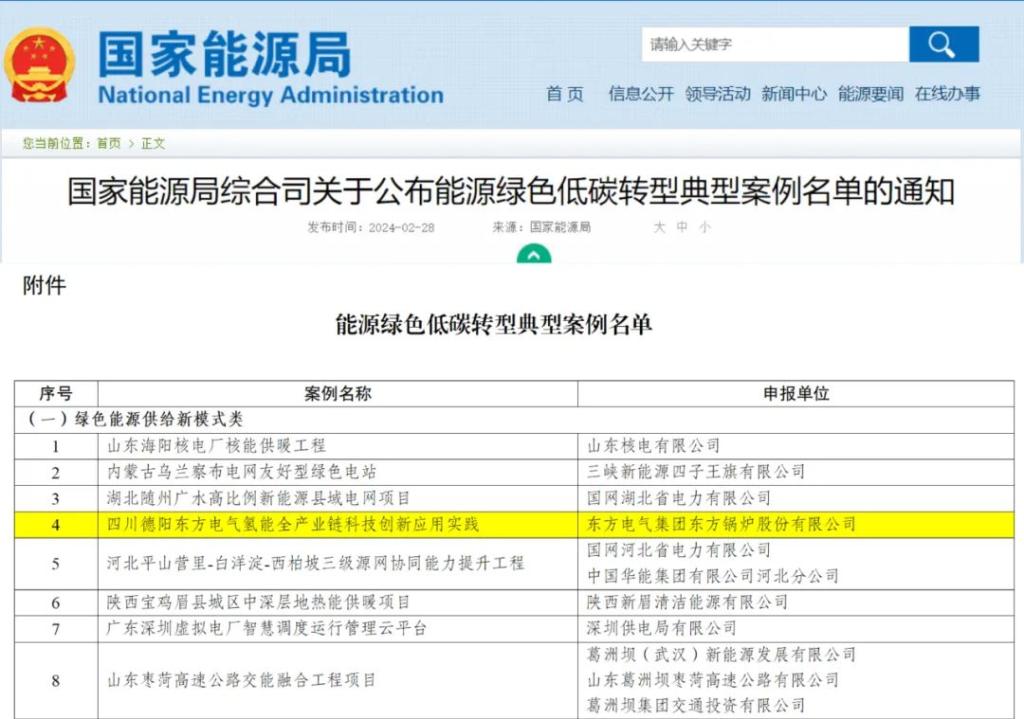 本網訊2月28日,國家能源局發(fā)布《關于公布能源綠色低碳轉型典型案例名單的通知》,由東方電氣集團旗下東方鍋爐建設申報的四川德陽東方電氣氫能全產業(yè)鏈科技創(chuàng)新應用實踐從150余個案例中脫穎而出,成功入選國家能源綠色低碳轉型典型案例。