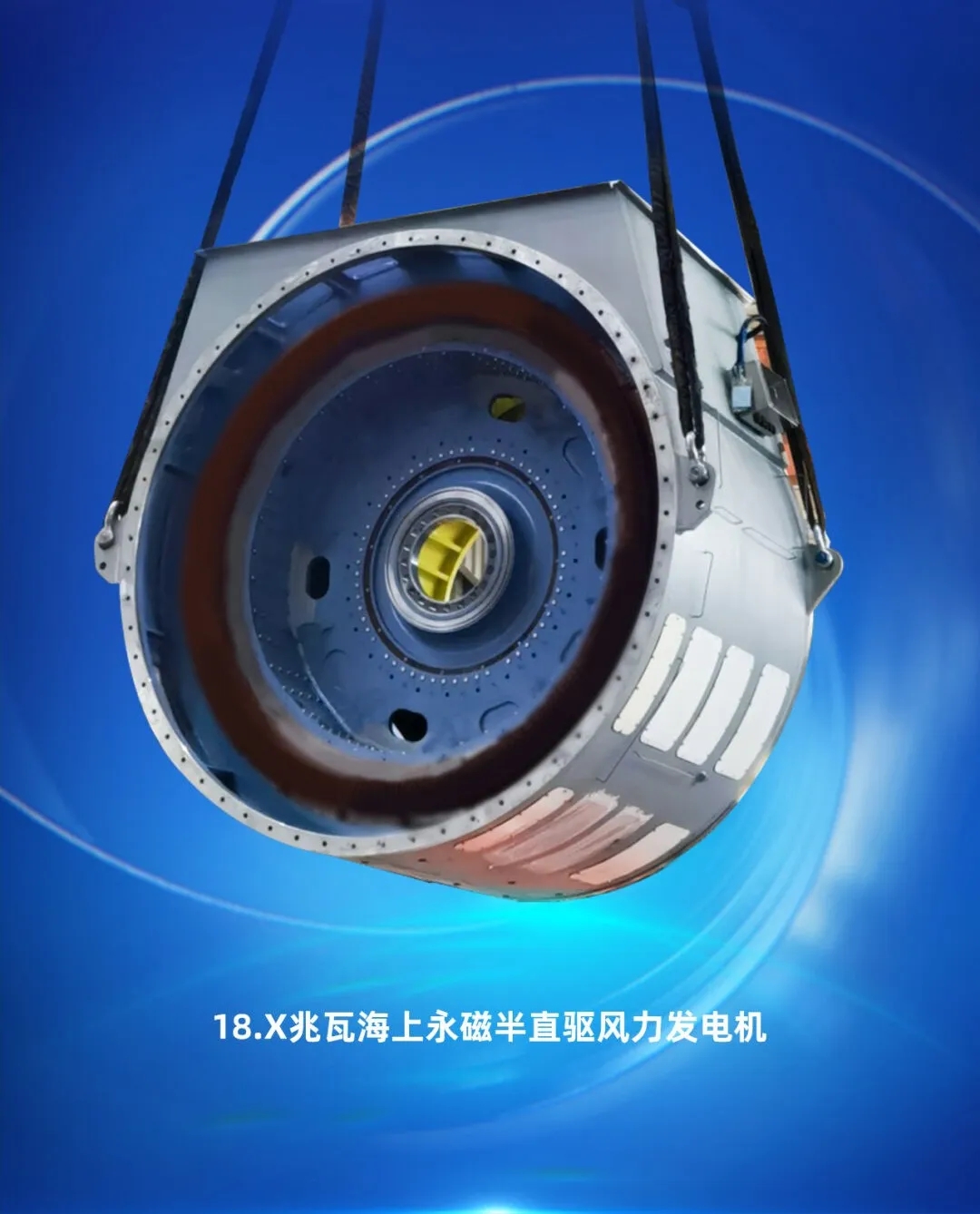 擁有完全自主知識產(chǎn)權(quán)的全新一代18兆瓦海上直驅(qū)風(fēng)電機組,關(guān)鍵部件葉片、發(fā)電機、變流器、變壓器等完全實現(xiàn)了國產(chǎn)化,推動了整個風(fēng)電產(chǎn)業(yè)鏈的協(xié)同發(fā)展和技術(shù)進步,該機組獲評2023年度央企十大國之重器。