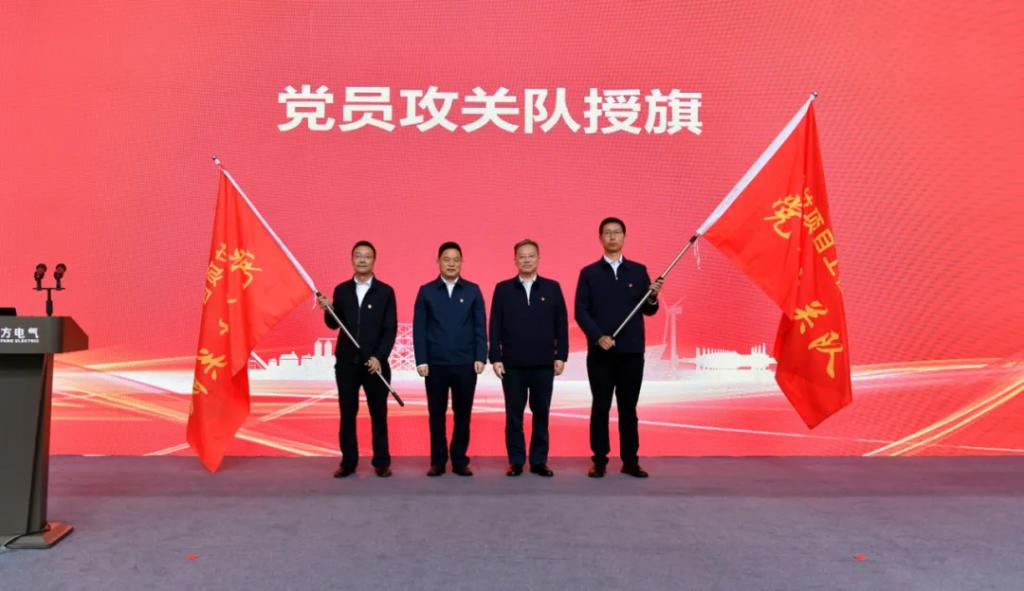 儀式上,東方電機(jī)黨委、大唐西藏公司黨委舉行“鏈上黨建”共建活動(dòng),發(fā)布了“鏈上黨建”共建方案,雙方簽訂共建協(xié)議。王軍、沈鵬為大唐扎拉水電站項(xiàng)目工程建設(shè)黨員攻關(guān)隊(duì)、機(jī)組研制黨員攻關(guān)隊(duì)授旗。