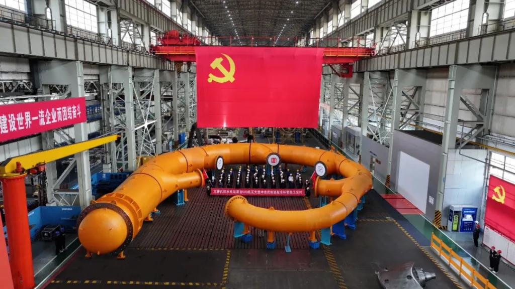 10月21日,由東方電氣集團(tuán)自主研制的世界首臺(tái)500兆瓦沖擊式水電機(jī)組配水環(huán)管率先完工交付,標(biāo)志著我國(guó)高水頭、大容量沖擊式水電機(jī)組研制取得又一里程碑成果。東方電氣集團(tuán)黨組成員、副總經(jīng)理王軍,大唐西藏公司黨委書(shū)記、董事長(zhǎng)沈鵬出席完工交付儀式。