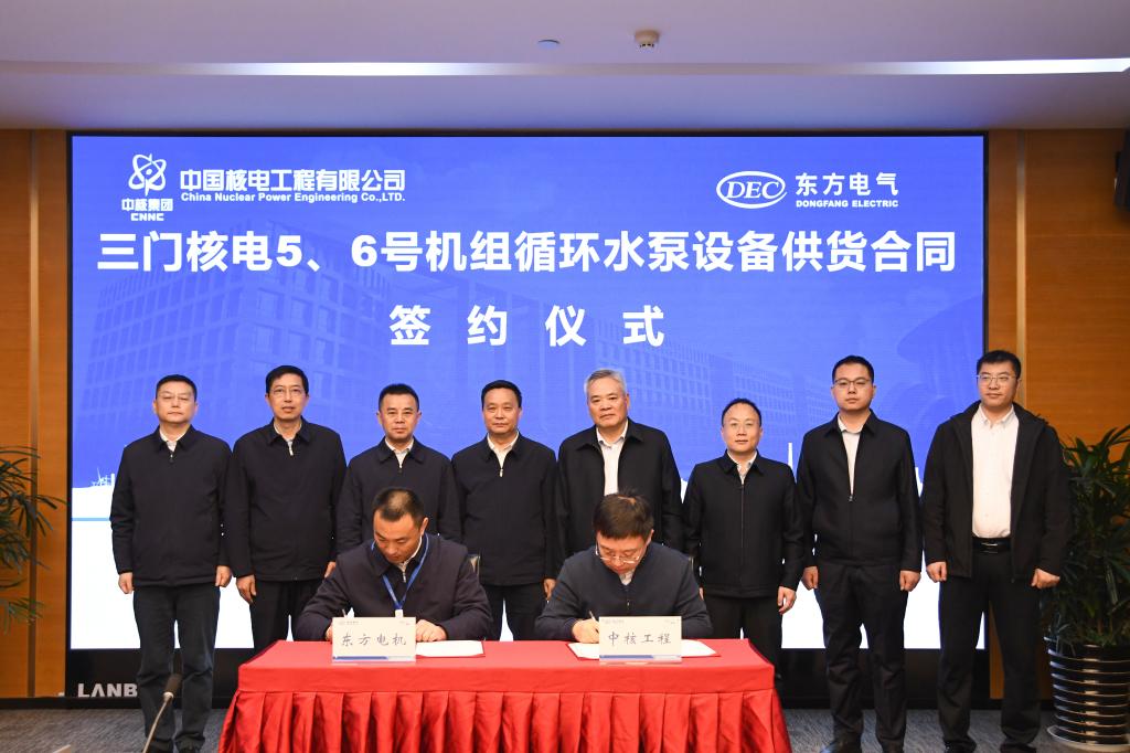 2月25日,東方電氣集團(tuán)所屬東方電機(jī)與中國核電工程有限公司進(jìn)行三門核電5、6號機(jī)組循環(huán)水泵設(shè)備供貨合同簽約。簽約儀式上,雙方圍繞核電技術(shù)創(chuàng)新、產(chǎn)業(yè)協(xié)同發(fā)展等展開深入討論。