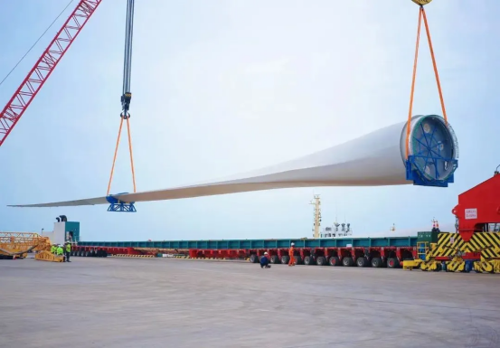 單支長度達153米的“葉片長龍”,長度堪比4架C919客機首尾相接,運輸難度極高。從工廠到港口的運輸路線如“障礙賽”,高壓線、橋梁、急彎層層阻隔,發(fā)運團隊提前半年實地勘測,多次復勘定制“分段式護送”方案。