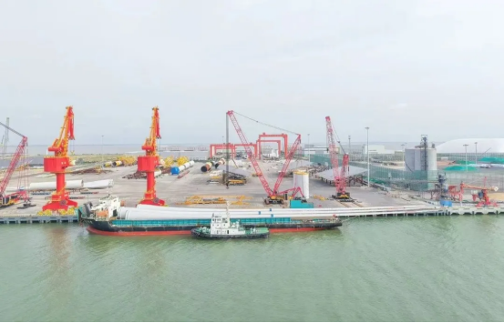 8月4日,由東方電氣集團所屬東方風電研制的全球單機容量最大26兆瓦海上風電機組核心部件——153米全球最長葉片和超500噸全球最重機艙,安全抵達山東東營廣利港。