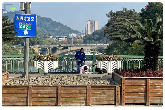 當(dāng)途經(jīng)簸米灣大橋時,他注意到,一名女孩正坐在大橋中央的護(hù)欄上,面向釜溪河,身體搖搖欲墜,似乎有輕生的念頭。