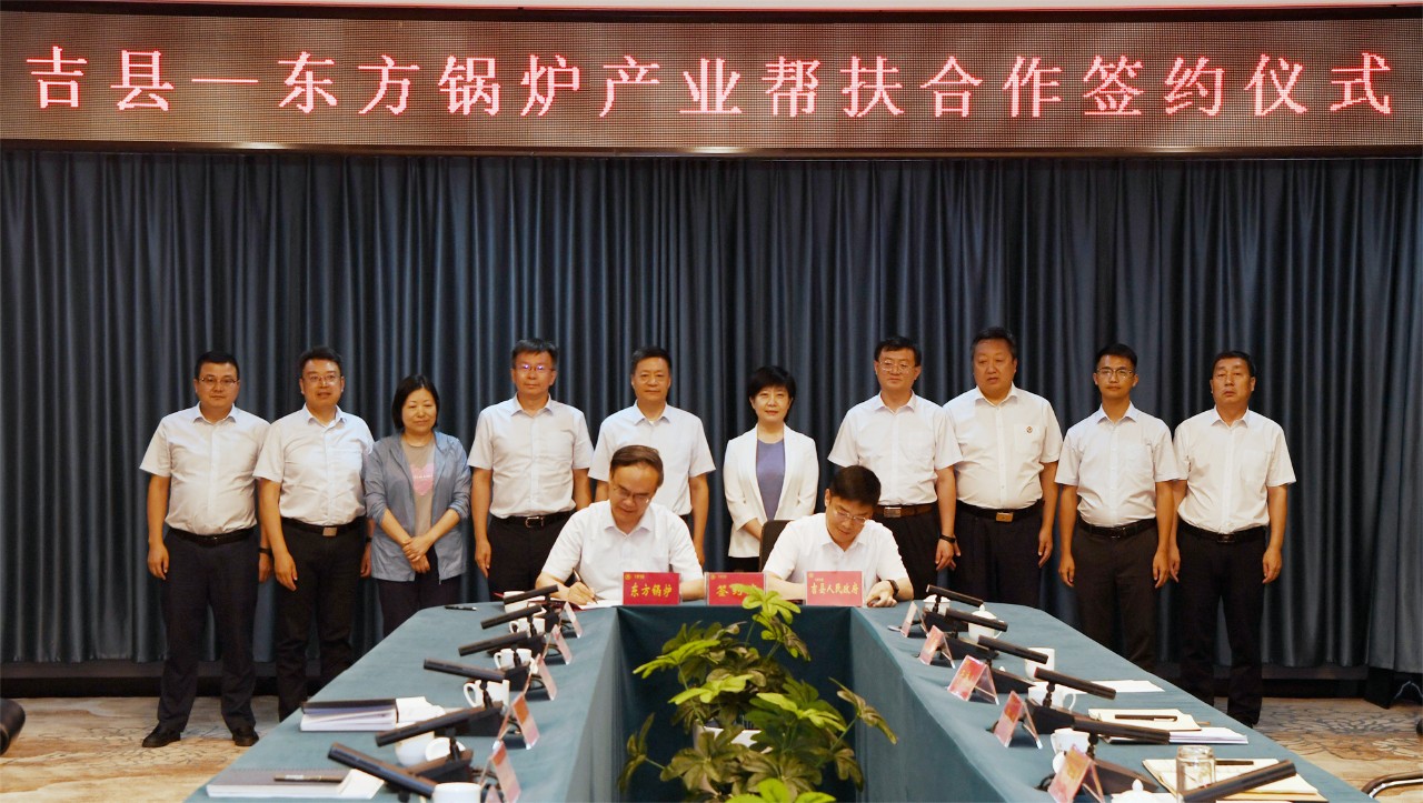 在俞培根、李忠軍與吉縣縣委、縣政府領導安娜、尚立春、陳鋒等共同見證下,東方鍋爐黨委書記、董事長林光平與吉縣縣委常委、常務副縣長龐大懿代表雙方簽署產業(yè)幫扶合作協議。雙方將立足吉縣資源稟賦,充分發(fā)揮東方電氣自身產業(yè)優(yōu)勢,助推吉縣打造黃河流域綠色轉型新樣板,為吉縣鄉(xiāng)村振興繪就新圖景。