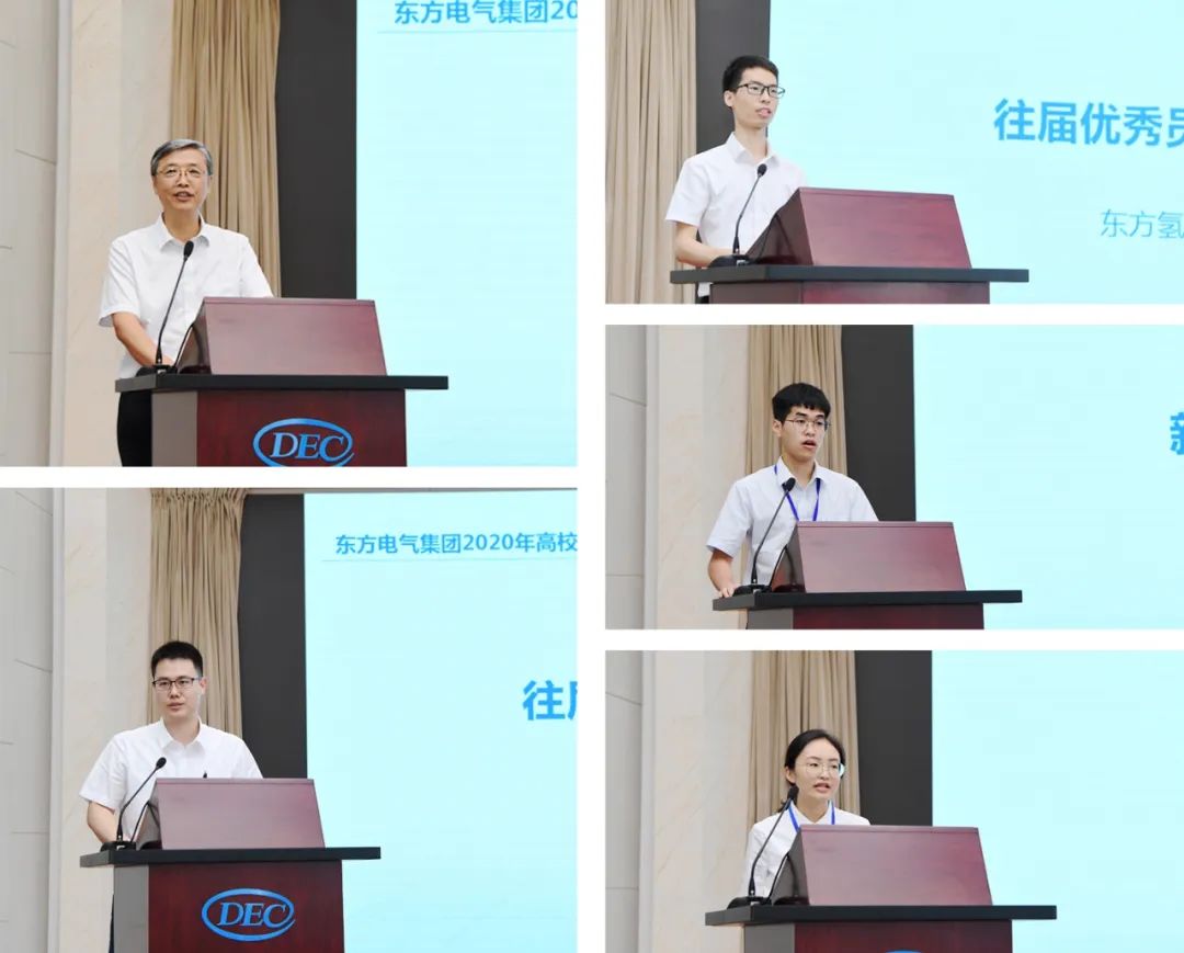 開班典禮上,新員工們觀看了東方電氣集團(tuán)宣傳片,東方電氣集團(tuán)往屆優(yōu)秀員工代表、新入職員工代表、用人單位代表分別從成長(zhǎng)經(jīng)歷、未來的思考和打算、人才在企業(yè)的成長(zhǎng)平臺(tái)等角度作了分享發(fā)言。