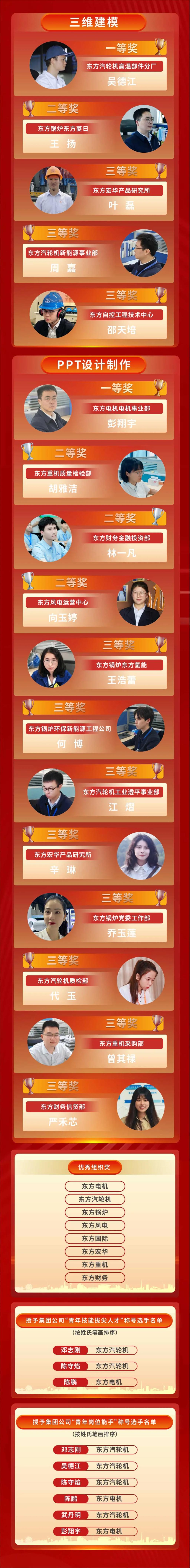 近日,東方電氣集團(tuán)第三屆青年職業(yè)技能大賽成功舉辦。通過(guò)激烈角逐,共42位青年職工獲獎(jiǎng)。其中,6名選手被評(píng)為集團(tuán)公司青年崗位能手,3名選手被認(rèn)定為集團(tuán)公司青年技能拔尖人才,10名選手獲得職業(yè)技能等級(jí)(職業(yè)資格)晉升。