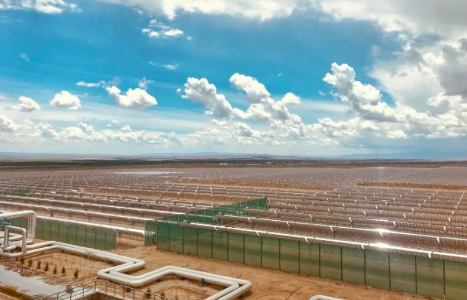 哈密50兆瓦光熱發(fā)電項(xiàng)目是國(guó)家能源局批準(zhǔn)的首批20個(gè)光熱示范項(xiàng)目之一。東方電氣提供核心系統(tǒng)與設(shè)備,能夠高效利用吸熱塔中的熔鹽吸收太陽(yáng)光熱量,將約290攝氏度的熔鹽加熱成565攝氏度的高溫熔鹽,再經(jīng)過熱能交換產(chǎn)生高溫高壓蒸汽,推動(dòng)汽輪發(fā)電機(jī)發(fā)電,并配置13小時(shí)儲(chǔ)熱系統(tǒng)確保機(jī)組24小時(shí)連續(xù)穩(wěn)定運(yùn)行,對(duì)保證電力系統(tǒng)安全、穩(wěn)定、高效運(yùn)行具有重要作用。