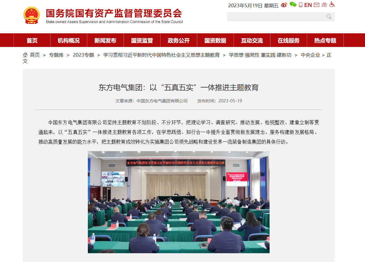 中國東方電氣集團(tuán)有限公司堅持主題教育不劃階段、不分環(huán)節(jié),把理論學(xué)習(xí)、調(diào)查研究、推動發(fā)展、檢視整改、建章立制等貫通起來,以“五真五實”一體推進(jìn)主題教育各項工作,在學(xué)思踐悟、知行合一中提升全面貫徹新發(fā)展理念、服務(wù)構(gòu)建新發(fā)展格局、推動高質(zhì)量發(fā)展的能力水平,把主題教育成效轉(zhuǎn)化為實施集團(tuán)公司領(lǐng)先戰(zhàn)略和建設(shè)世界一流裝備制造集團(tuán)的具體行動。