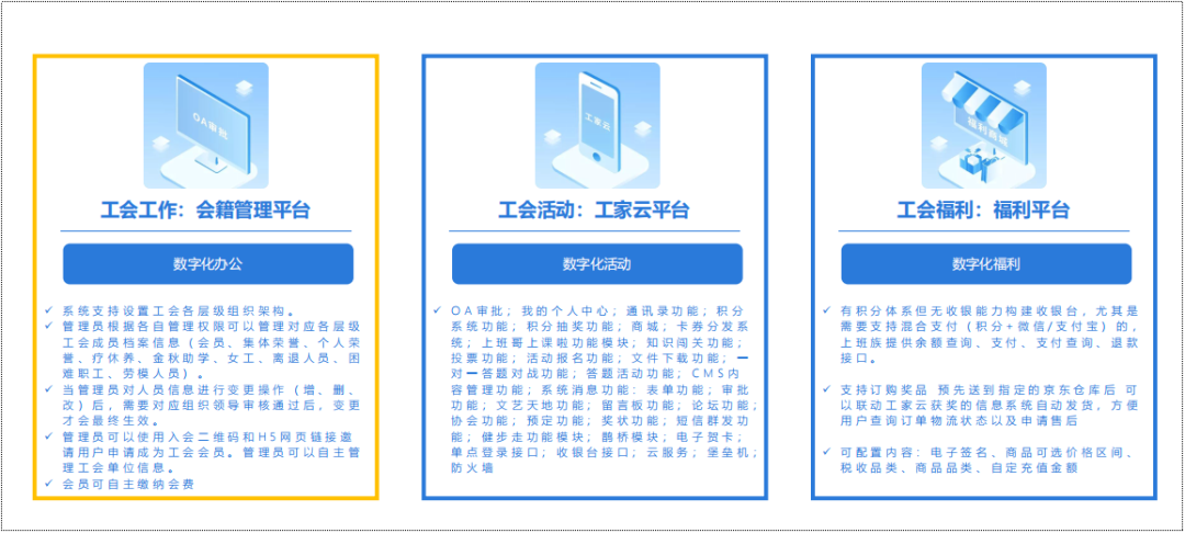 總部直屬黨委把滿足職工差異化、精準化、便捷化需求作為“我為群眾辦實事”重點項目推進。以“東方e家”智慧工會云平臺為載體,將線上線下工會服務(wù)有機結(jié)合,不斷滿足職工對工會服務(wù)多元化需求;拓寬職工參與工會各類活動的平臺和渠道,有效提高工會服務(wù)會員的覆蓋率。目前,該項目已通過需求調(diào)研和平臺建設(shè)可行性方案論證,預計7月底投入試運行。