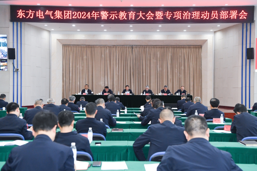 本網(wǎng)訊 3月29日,東方電氣集團召開2024年警示教育大會暨專項治理動員部署會,深入學習貫徹習近平新時代中國特色社會主義思想,全面貫徹黨的二十大和二十屆二中全會精神,堅決貫徹二十屆中央紀委三次全會精神特別是習近平總書記關于黨的自我革命的重要思想,認真落實中央巡視整改有關要求,開展警示教育,加強廉潔文化建設,深化專項治理,持之以恒推進全面從嚴治黨。集團公司領導俞培根、張彥軍、宋致遠、劉智全、孫國君、袁明剛出席會議。
