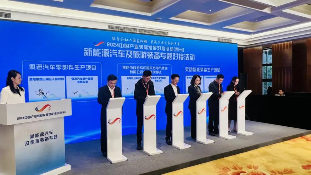 2024中國產(chǎn)業(yè)轉(zhuǎn)移發(fā)展對接活動(貴州)以“服務(wù)和融入國家戰(zhàn)略 共贏產(chǎn)業(yè)發(fā)展新未來”為主題,包括1場綜合活動和4場專題活動,圍繞資源精深加工及綜合利用、先進(jìn)裝備制造、大數(shù)據(jù)電子信息、特色輕工等貴州特色優(yōu)勢產(chǎn)業(yè),開展地市推介、政企對接、實地考察、專家解讀、項目簽約等。在新能源汽車及旅游裝備專題對接活動中,東方電氣集團與貴陽市人民政府簽署了戰(zhàn)略合作框架協(xié)議。