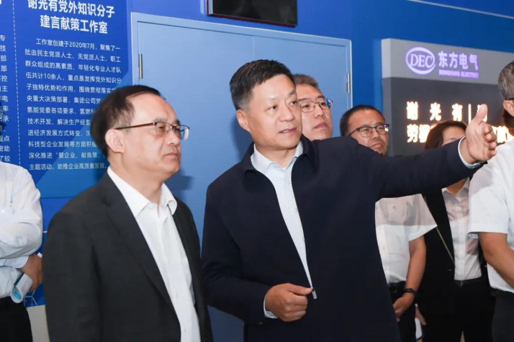 在俞培根的陪同下,段向東一行參觀了東方電氣科技展示廳、氫能產(chǎn)線,深入了解東方電氣集團(tuán)的發(fā)展歷程、產(chǎn)業(yè)規(guī)劃與布局、科技創(chuàng)新等情況。