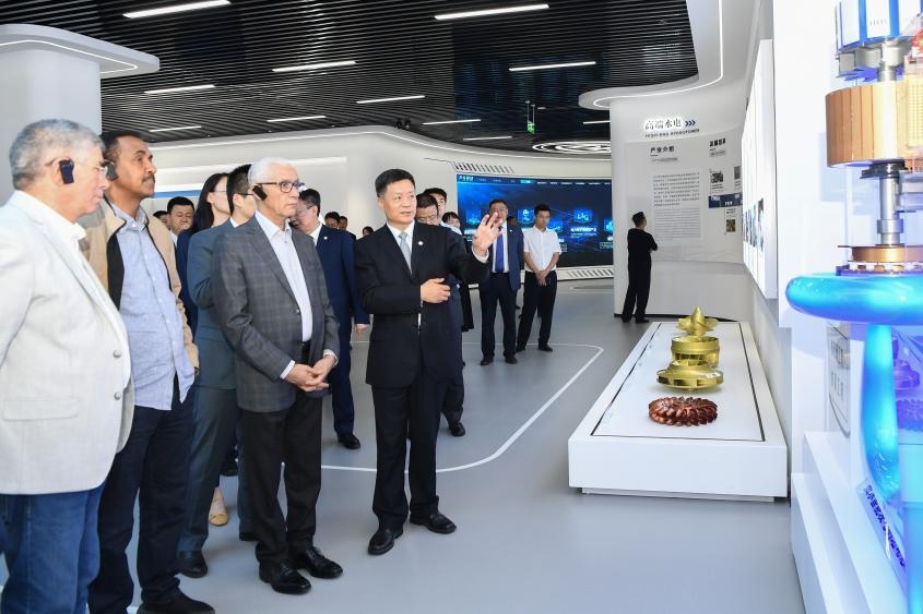 在俞培根等陪同下,阿拉米一行參觀了東方電氣科技展示廳,詳細(xì)了解東方電氣集團(tuán)科技創(chuàng)新、綠色裝備制造、共建“一帶一路”等方面情況。阿拉米對東方電氣集團(tuán)在能源領(lǐng)域所取得的成就表示祝賀。