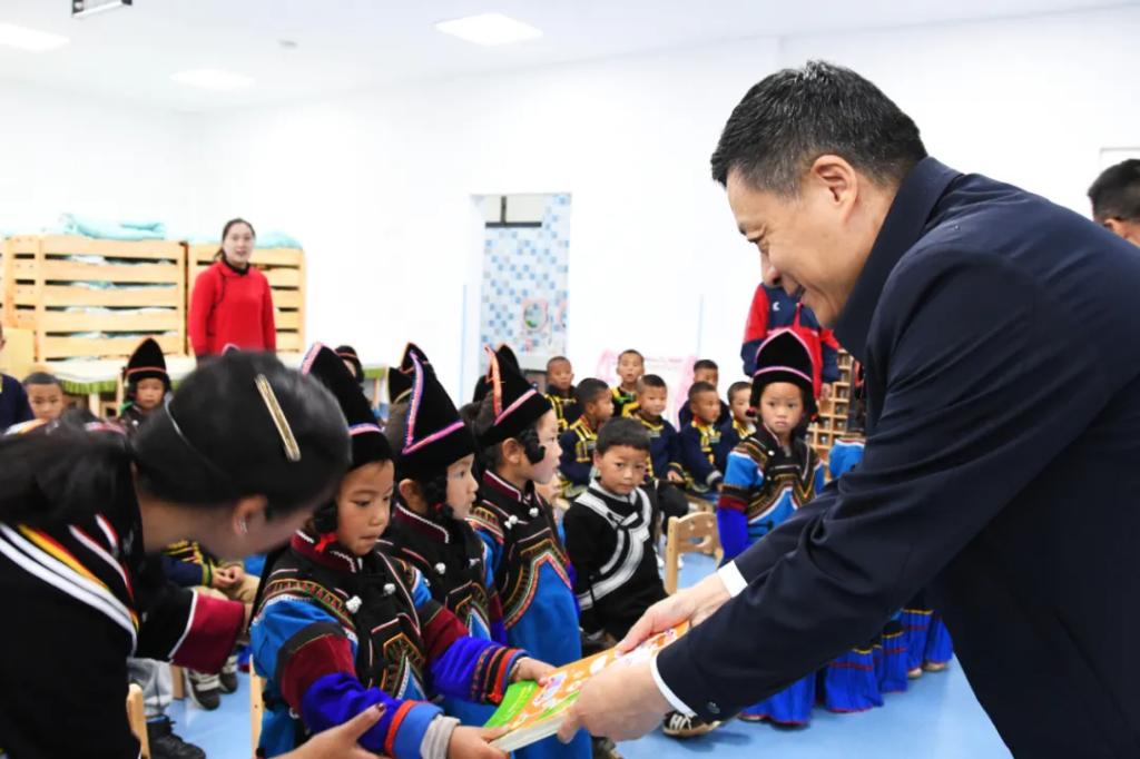 在東方電氣洛且博村幼兒園,俞培根深入了解幼教設(shè)施建設(shè)情況和當(dāng)?shù)剡m齡兒童學(xué)前教育情況,為幼兒園小朋友贈(zèng)送書籍繪本。他指出,要發(fā)揮好幼兒園、幼教點(diǎn)作用,以真心真情和更大努力,呵護(hù)兒童茁壯成長,抓好“后繼有人”這個(gè)根本大計(jì),讓鄉(xiāng)村教育賦能鄉(xiāng)村振興,把偉大事業(yè)推向前進(jìn)。