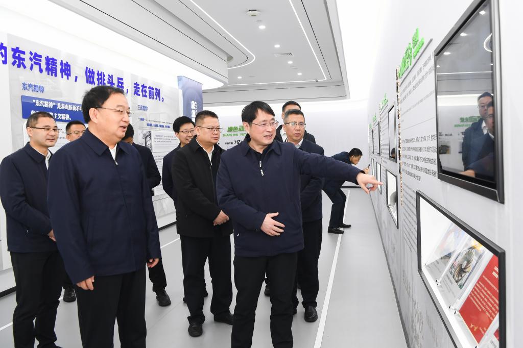 座談前,任廣鵬一行參觀了東方電氣科技展示廳,深入了解東方電氣集團(tuán)發(fā)展歷程、六電六業(yè)發(fā)展等情況。