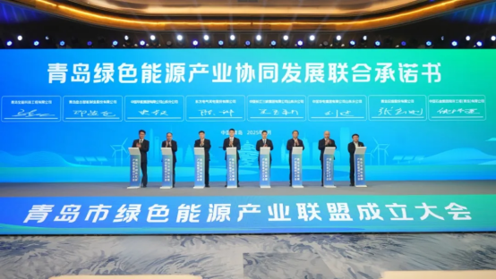 會議舉行了青島市綠色能源產(chǎn)業(yè)聯(lián)盟揭牌儀式,同步成立青島市氫能發(fā)展促進(jìn)聯(lián)盟(子聯(lián)盟)、青島市固態(tài)電池產(chǎn)業(yè)聯(lián)盟(子聯(lián)盟)。與會企業(yè)簽署了《青島綠色能源產(chǎn)業(yè)協(xié)同發(fā)展聯(lián)合承諾書》,并圍繞海上風(fēng)電技術(shù)、海水無淡化原位制氫技術(shù)等進(jìn)行企業(yè)推介和產(chǎn)品發(fā)布。