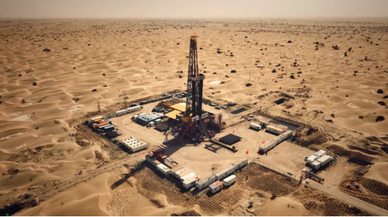 “地殼一號(hào)”萬米科研鉆機(jī)綜合技術(shù)水平達(dá)到國際先進(jìn)水平,填補(bǔ)了國內(nèi)空白,成為國際上第一口鉆穿白堊紀(jì)陸相地層的科學(xué)探井。圖為2024年10月,“地殼一號(hào)”萬米鉆機(jī)在新疆塔克拉瑪干沙漠里工作。
