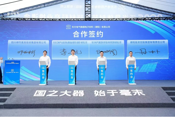 會上,東方精材分別與無錫帝科、杭州華光簽訂合作協(xié)議,綿竹市政府與東方研究院簽署合作協(xié)議,東方江峽產(chǎn)業(yè)投資、德陽投資控股集團、四川綿竹高發(fā)投資集團、東方研究院簽訂合作協(xié)議,江蘇瀚思瑞與四川綿竹高新技術(shù)產(chǎn)業(yè)園區(qū)簽訂合作協(xié)議。