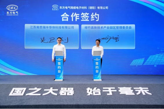 東方電氣集團總經(jīng)理、黨組副書記張彥軍,德陽市委書記劉光強,中國電子商會會長王寧,東方電氣集團總經(jīng)理助理、股份公司副總裁胡修奎,德陽市委常委、常務(wù)副市長李江波,德陽市副市長、綿竹市委書記王宏,綿竹市委副書記、代理市長潘鵬,清華大學、浙江大學、四川大學、華潤微電子控股有限公司、無錫帝科電子材料股份有限公司、杭州華光焊接新材料股份有限公司、福建省福東科技集團有限公司、廣州市儒興科技股份有限公司、株洲中車時代半導體有限公司、隆基綠能科技股份有限公司、英特爾產(chǎn)品(成都)有限公司、蘇州創(chuàng)印電子科技有限公司、德陽投資控股集團有限責任公司、四川綿竹高發(fā)投資集團有限公司等相關(guān)領(lǐng)導專家出席大會。