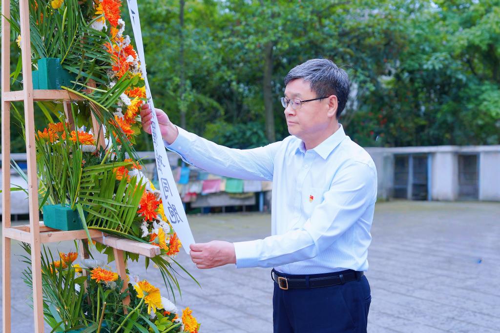 在漢旺公墓,羅乾宜向在“5·12”汶川特大地震中遇難同胞哀思緬懷、敬獻(xiàn)花籃。